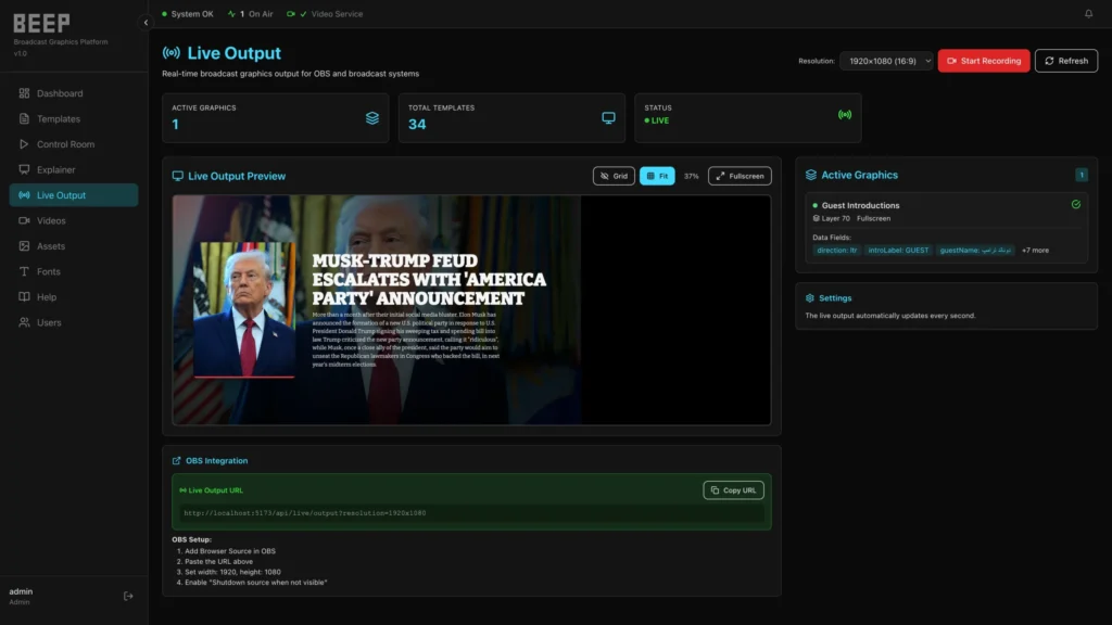 - تطوير نظام قوالب رسومية قائم على الويب للبث المباشر